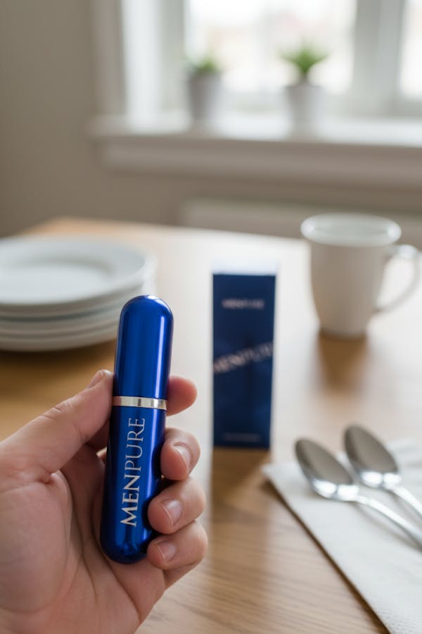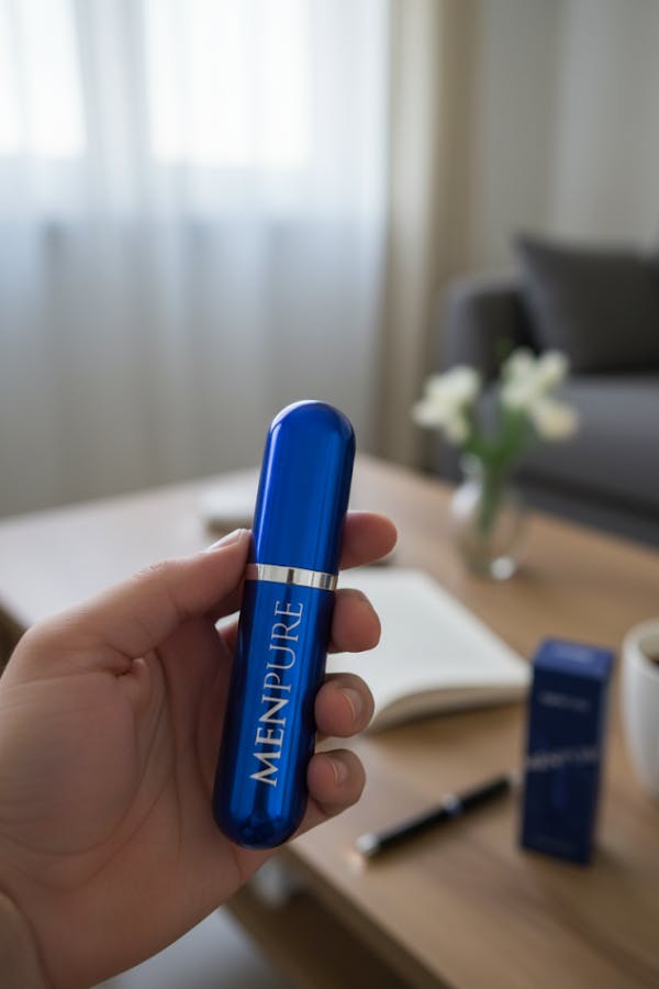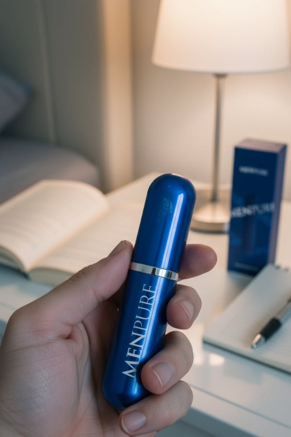 Forget heavy pills or risky supplements. Menpure Spray is non-addictive, hypoallergenic, and safe for external use. Compact and discreet, it fits easily in your pocket or bag so you’re always ready.